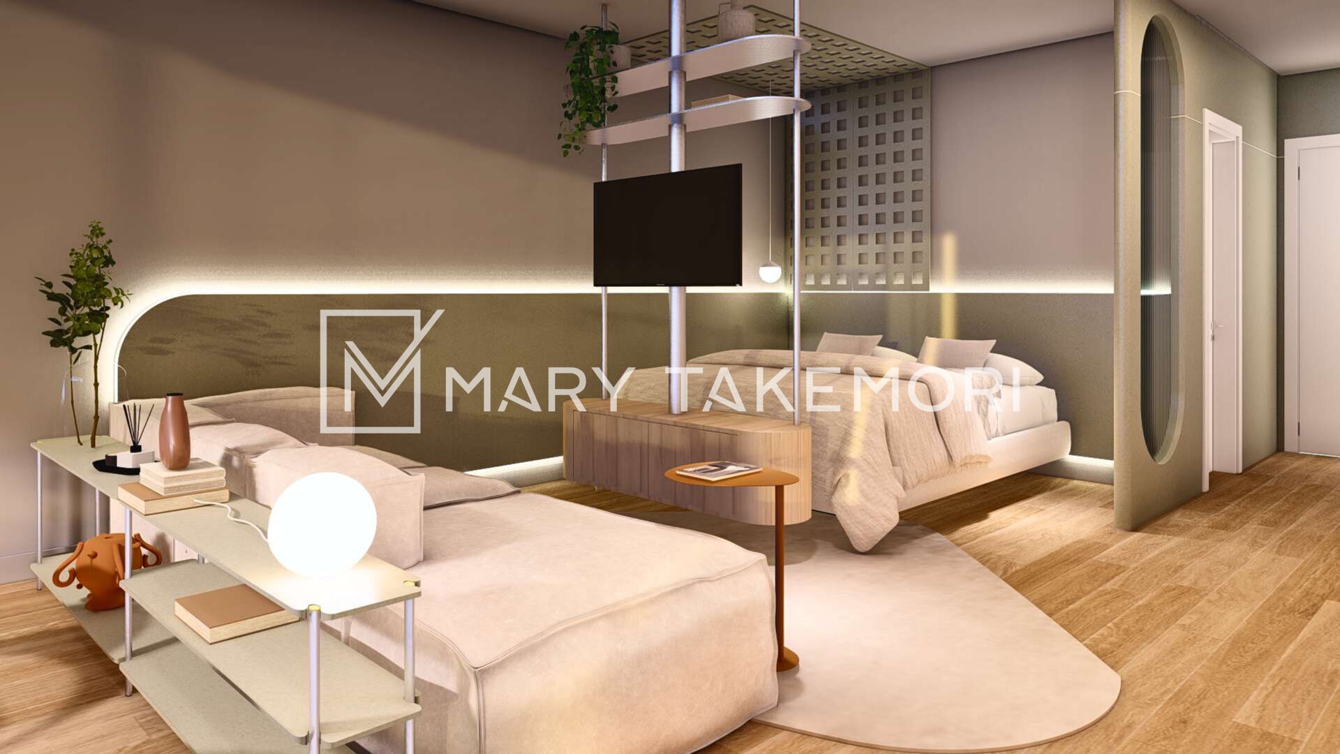 6 unidades por andar com opção de apartamento com 2 suítes, 1 suíte + 1 quarto e compacto de luxo (studio).